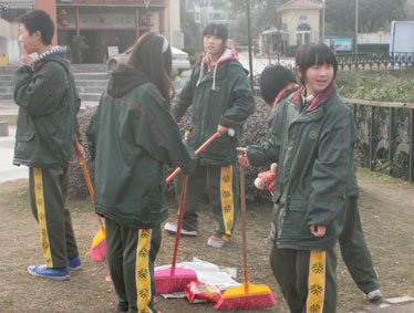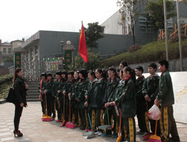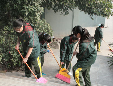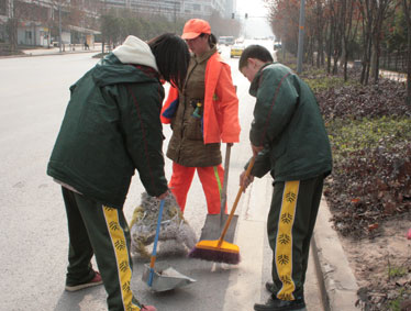 上午10:00,初中部团委和学生会的22名学生高举团旗,来到交巡警平台,开展志愿清扫卫生等服务活动,小志愿者们分成四组,分头开始清洁行动。这些来自初中七、八年级的学生,虽然只有十三、四岁,干起活来却井井有条,相互之间配合的也十分默契:你扫地,我抹桌,你负责栏杆,我负责墙面;这组的任务完成了,马上就去帮助其他组继续干 …… 两个小时过去了,交巡警平台里里外外焕然一新,小志愿者们的脸上也都写满了自豪的笑容。