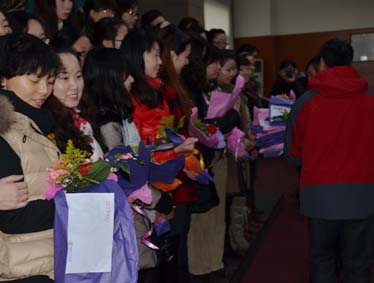 3月7日,在“国际劳动妇女节”来临之际,学校领导、重庆电视台、大渝网为全校200多位女教职员工送来了礼物和亲切祝福。全校女教职员工代表齐聚学校报告厅,小学部德育处苏远荣主任和工会蒋涌泉主席作了讲话,他们代表学校为大家带来了最真挚的祝福,向广大女教职员工表示慰问。重庆电视台和大渝网的工作人员为教师代表献上了鲜花,表达了对可亲、可爱、可敬的老师们的祝愿。