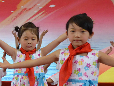 最后,两场演出都在老师们的合唱《中国少年先锋队队歌》的歌声中结束。