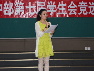 2013年10月10日晚,我校初中部举行了第七届学生会选举。同学们踊跃报名,积极参与,现场气氛紧张而又热烈。