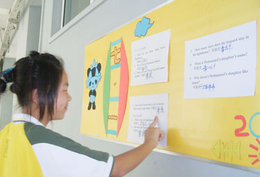 周一举行了英语语感阅读的抢答,抢答题贴在每班走廊的板报上,每每下课铃一响,学生都迫不及待的来到走廊上,争先恐后地看题,然后跃跃欲试的来到老师面前答题。当有同学答对时,便亲手
