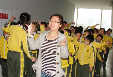四年级的小朋友不仅仅快乐、活泼地表演了歌曲和舞蹈,同时还把书本上的知识穿插进活动中。在活动中,老师和孩子们一起做抢答拼写单词的游戏,孩子们都很感兴趣,效果也很好。由于平时课堂时间有限,设计这样的活动就能使孩子们主动开心地复习课本知识,何乐而不为呢?