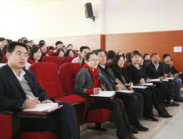 上午9点,我校小学部数学教师曾莉、中学部英语教师刘福均和杜郎口中学英语教师杨桂红、数学教师宋彬依次同台献课,分别展示了我校和杜郎口中学的教学情况。我校两位教师的教学激情四溢,充分展示了我校教师风采和课堂教学改革成果,得到与会嘉宾和教师的高度评价。杜郎口中学两位教师充分展示了“10+
