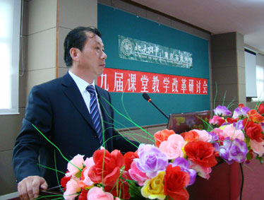 这是北大附中重庆实验学校中学部第九届课堂教学改革研讨活动启动仪式的现场。“‘教’向‘学’转变”、“教师是主导,学生是主体”、“让全体学生都动起来”、“以导学案为突破口”等等这些是本期开学两月来一直在中学部教研活动中出现频率最高的字眼。思想引领,转变观念是行动前的酝酿,今日启动第九届课堂教学改革研讨活动,标志着中学部全体教师将用行动去践行理念,将“让全体学生都动起来”的课堂进行到底。