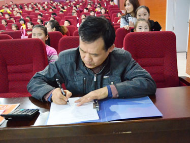 在等待评委紧张打分的过程中,上一届“为明好声音”一等奖获得者谭均洋同学为大家献上一首《香格里拉》,赢得同学们的阵阵掌声。杜海燕老师的一曲《女儿情》,更是把整场比赛的气氛推上一个新的高潮。