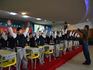 最后,两位老师进行了简单说课,他们从教材、教法、学生学法指导等角度对自己的课例进行了阐释。随即,与会领导和老师们用精辟的语言,对两位老师的课例进行了点评:凤山中学姜丽老师的点评全面细致,可圈可点,尤其对刘福均老师新颖的教学设计,丰富的教学活动,自然巧妙的感恩教育的渗透,听说读写等方面的英语学习能力的全方面培养给予了非常高的评价;渝北中学的唐子玲老师结合自己对教学的理解,对两位老师的课例进行了分析;渝北实验中学的戴校长则从课堂结构、语音训练、构筑英语学习环境等角度对两位老师的课进行了极为动情的称赞,尤其对我校坚持采用全英文教学感到赞叹,对课后学生展示的英语歌曲、英语话剧表演赞不绝囗,表示要像我校一样开展丰富的学生英语活动,营造英语学习氛围。重庆市教科院陶纯恭主任的点评高屋建瓴,他首先对本次活动的成功举办给予了充分肯定,又指出,本次活动展示了北大附中重庆实验学校初中部全体老师的敬业精神、教育教学态度和学生们学习英语的阶段性的可喜成果,而两位英语老师展现出来的先进的教学理念,高超的教学艺术,则更是处于重庆市领先地位。之后又为大家指明了英语教学努力的方向,即:教学氛围要有热度;教学时间要有宽度;教学内容的讲解要适度;教学活动要有深度;教学结果要有效度。陶主任的指导如醍醐灌顶,让所有老师豁然开朗。接着,英语教研员冉荼也对我校初中部英语组严谨细致的教风,充满张力的课堂加以褒扬,指出,教学研讨活动能最好地帮助所有英语教师拓宽视野,取长补短,共同进步,经常举办类似的教研活动,对老师的成长大有裨益,提出老师应该做反思型教师和学习型教师,才能找到英语教学的有效方法,使学生由“被动学习”变为“主动学习”,使英语课堂真正活起来!