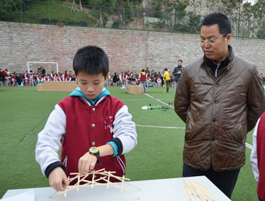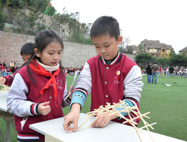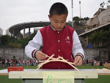 三、四、五、六年级的筷子搭廊桥比赛: